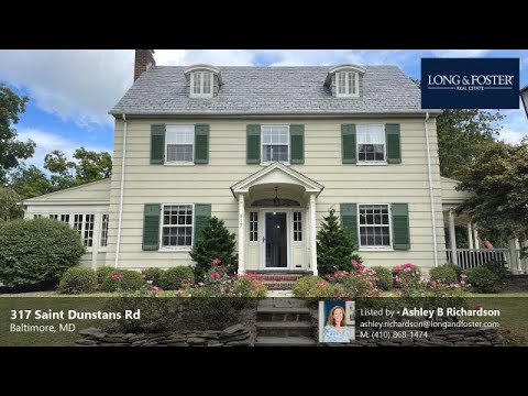 Welcome home to this bright, light, cheerful, serene Homeland colonial, well-sited on a large lot with a level yard perfect for sports, gardens, or playtime. A center hall leads to spacious rooms, including a gourmet kitchen complete with loads of storage, upgraded appliances, and a breakfast bar for quick meals. Lots of counter space surrounds the prep sink, ideal for creating meals, hosting parties, and teaching the little ones to make cookies. Off the dining room area French doors leading to an idyllic covered porch. Graciously sized living room leads to a comfy den with walls of windows. On the second level, find original walnut doors, renovated baths, and three large bedrooms. Climb another level to discover a home office or bedroom 5 and bedroom 4 with an en-suite bath. Use the basement for storage, and enjoy the over-sized 2-car garage located with alley access. Lots of parking on Saint Dunstans and Putney, also. Come savor the amenities of 317 Saint Dunstans while you plan your next adventures. Welcome Home.