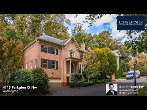 Welcome to 4115 Parkglen Court, a stunning all-brick Colonial located in Hillandale, an exclusive gated community tucked inside of Georgetown! This magnificent home exudes sophistication, with over 5,700 SF of finished space on 3 floors. Upon arriving at the property, the meticulous attention to detail is evident – from the pristinely manicured hedges and trees and brick-paver driveway, to the stately portico. As you enter the home, the grand two-story foyer sets the stage with a delicate yet impressive chandelier, gorgeous hardwood floors, curved double staircase and custom wainscoting. The main floor features soaring ceilings, beautiful hardwood floors, two living rooms, each with their own gas fireplace and one with a custom paneled accent wall, access to the deck and tons of light from the many windows and French doors on this level. The gourmet kitchen, which opens to the primary living room, features stainless steel Viking appliances, and a custom island with butcher block counter. White painted cabinets, marble countertops and custom fixtures finish this space, which is truly the heart of this home. The living rooms also feature wood beamed ceilings and built-ins, and the formal dining room features chair rail and dental crown moulding. The office / library has custom millwork built-ins and French doors that lead to the deck, and there’s a powder room on the main level, too – perfect for guests! sitting room, an office, living room, two fireplaces and a half bath. The upper level features 4 bedrooms and 3 baths. The luxurious primary suite is located just off of the second floor landing, and boasts hardwood floors, a sitting area, gas fireplace, 2 walk-in dual vanity, separate soaker tub, shower stall and 2 chandeliers. There are 3 secondary bedrooms on this level, one with an en-suite bath. The lower level features an English style basement featuring a movie theatre, large family room, a small yet fully equipped kitchen with stainless steel appliances, a bedroom and full bathroom, too – a perfect in-law or au-pair suite. The garage is accessible from the mud-room, which is also located on this level. The lot privately backs into the wooded Glover Park, separated by fencing. An oversized deck and beautifully landscaped yard space round out the exterior living spaces. With so much to love inside, there’s just as much to love about the community, which features tennis courts, a pool, recreation facility, playground, walking/jog paths and gym. The location is AMAZING! Just minutes from the Georgetown Waterfront and all of its restaurants and boutiques, as well as Downtown, Dupont Circle, and Embassy Row. You’re just 2 miles from the National Cathedral and the Kennedy Center, and just a little bit further to the National Zoo! An impeccable home in an absolutely impressive location. You CAN have it all. Welcome Home!