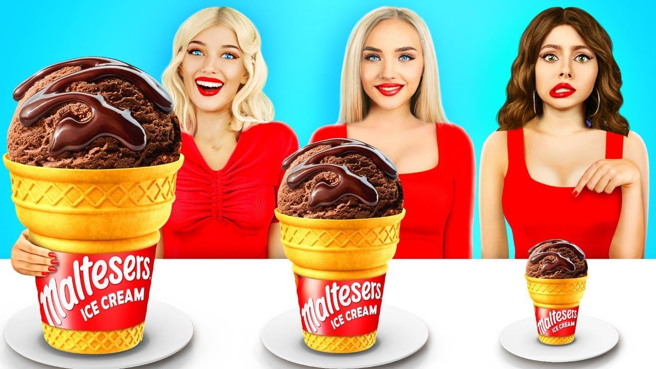 We are all so hungry, but not everyone will be able to eat completely, because only one will get a big plate, and someone will have to be content with a small and medium one. Today, all our viewers have the opportunity to watch an epic battle with a giant vs tiny food! Would you be able to handle such large portions?