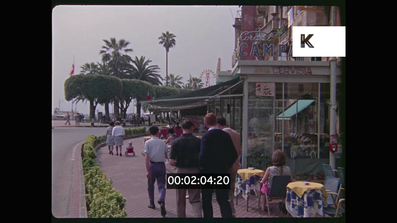 Cafes on the French Riviera, 1960s France, HD from 35mm from the Kinolibrary Archive Film Collections. To order the clip clean and high res for your commercial project or to find out more visit Available in 4K. Clip ref CHX1562