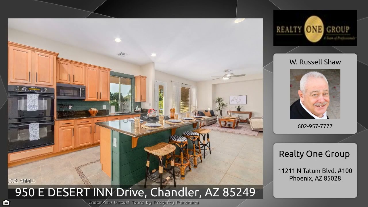 The Virtual Tour for the property at 950 E DESERT INN Drive, Chandler, AZ 85249 listed for $844,900: Other homes for sale by W. Russell Shaw of Realty One Group: Stunning Home In Exclusive Gated Chandler Community* Meticulously Maintained By Careful Original Owners* Downstairs Guest Suite With A Separate Entry* Formal Dining Room* Soaring Ceilings* Gourmet Kitchen With Oversized Kitchen Island & Custom Designer Finishes* Upgraded Ceiling Fans & Light Fixtures* French Doors To Paved Courtyard & Rose Garden* Feature Staircase* 2 Jack & Jill Suites * One Bedroom Currently Set Up As An Office With …