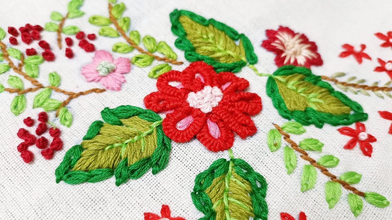 Different flower designs and colour combinations are used which looks a very attractive look. Suitable for cushion covers, table cloths, dining mats,ect. #handembroidery #indianembroidery #beautiful #easy #frenchknots #relaxing #satinstitch ChainCuisineDiningEmbroideryembroideryhandflowersFranceFrenchfrench cuisineFrench diningHandkhotsleavessatinstitchVideoVlogYouTube