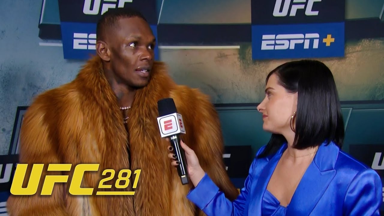Megan Olivi interviews Israel Adesanya backstage at UFC 281 after losing his middleweight title to Alex Pereira in the main event.