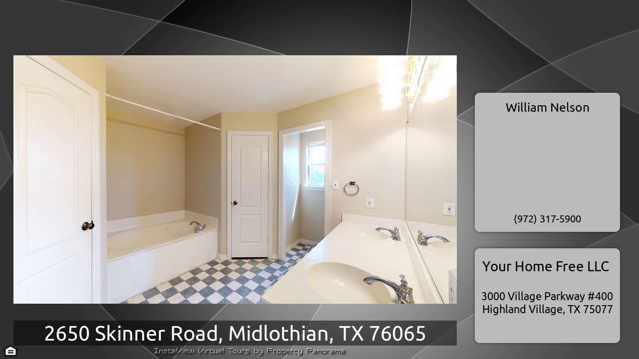 The Virtual Tour for the property at 2650 Skinner Road, Midlothian, TX 76065 listed for $386,800: Other homes for sale by William Nelson of Your Home Free LLC: *SELLER OFFERING UP TO 20K TOWARD UPGRADES WITH ACCEPTABLE OFFER CLOSING BY DEC 15TH!* Enjoy peace & tranquility with this home situated on more than 1 acre! Inside you will find an open layout offering 5 bedrooms, 3.5 baths, a study or formal dining space with French doors & spacious family room! Upgrades include gleaming hardwood-like flooring, today's paint tones, split bedroom plan & 3 car garage! Kitchen overlooking the family …