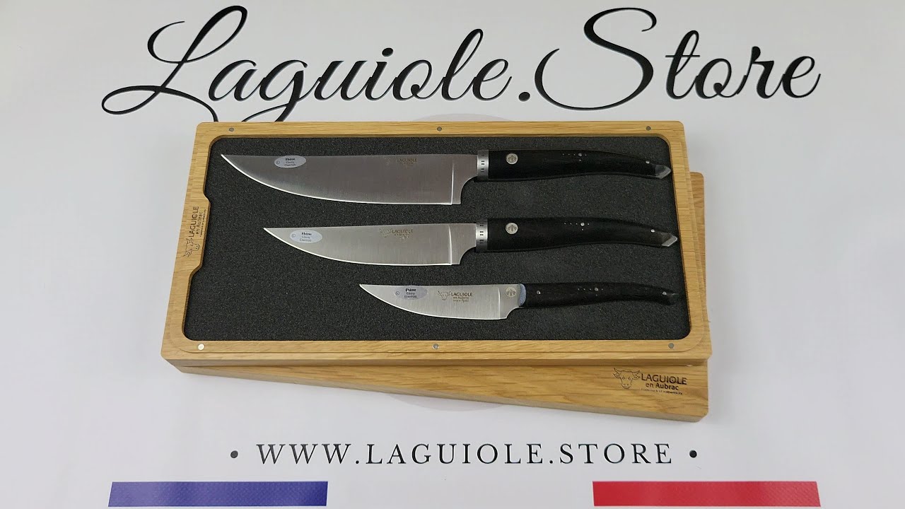 This #laguioleenaubrac #kitchenknives set “Gourmet” with #ebony wood handle designed by the French designer Benjamin Auzier contains the 3 essential knives for any cook who loves design and good meals who wants to be well equipped. Delivered in an oak wood box, it will be sure to please as a gift to offer or for yourself!