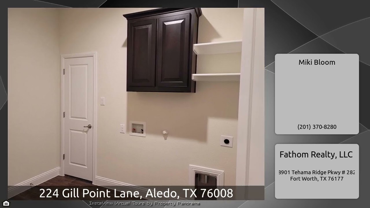 The Virtual Tour for the property at 224 Gill Point Lane, Aledo, TX 76008 listed for $2,750: Other homes for sale by Miki Bloom of Fathom Realty, LLC: Gorgeous NEW 1 story D.R. Horton home in Morningstar community and the sought after Aledo ISD! The home features open floor plan with 3 bedrooms and bonus flex room with French doors that could be an office or 4th bedroom. The gourmet kitchen includes 4 burners gas stove, large granite island bar with eat in dining area, SS appliances and butler pantry. The large living room offers gas FP, lots of natural light looking out to covered patio …