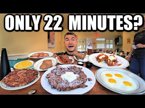 THE BIGGEST BREAKFAST CHALLENGE in Texas. With enough food to feed six people, this insane man versus food breakfast challenge consists of eggs, bacon, apple pancakes, eggs Benedict‘s, corned beef, ham, pulled pork, and everything else you could imagine in a breakfast meal and in a Texas meal. We are in San Antonio Texas at a famous restaurant Called the Magnolia Pancake Haus, with classic American breakfast fair, and great international items and fusions, they have celebrated 22 years of success. They have also been claimed to have the “Worlds Best Pancakes”. This massive food challenge was offered in celebration of that event. Challengers had 22 minutes to complete the impossible food challenge in order to get the $70 meal for free. Can we beat is undefeated food challenge?