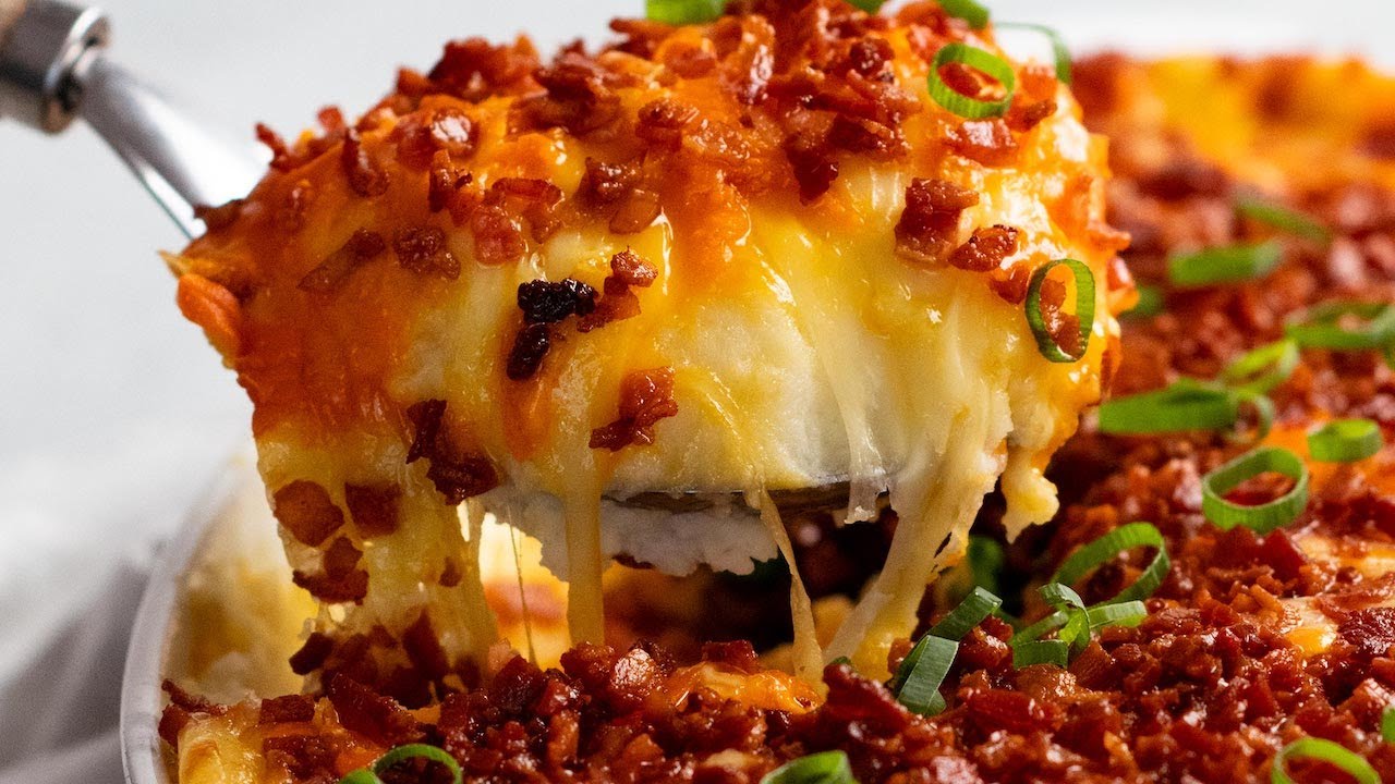 Mashed Potato Casserole is an outrageously delicious and highly practical way to make mashed potato ahead of time! A protective layer of cheese and bacon prevents the mash from drying out as it is reheats in the oven. Oh the powers of cheese!