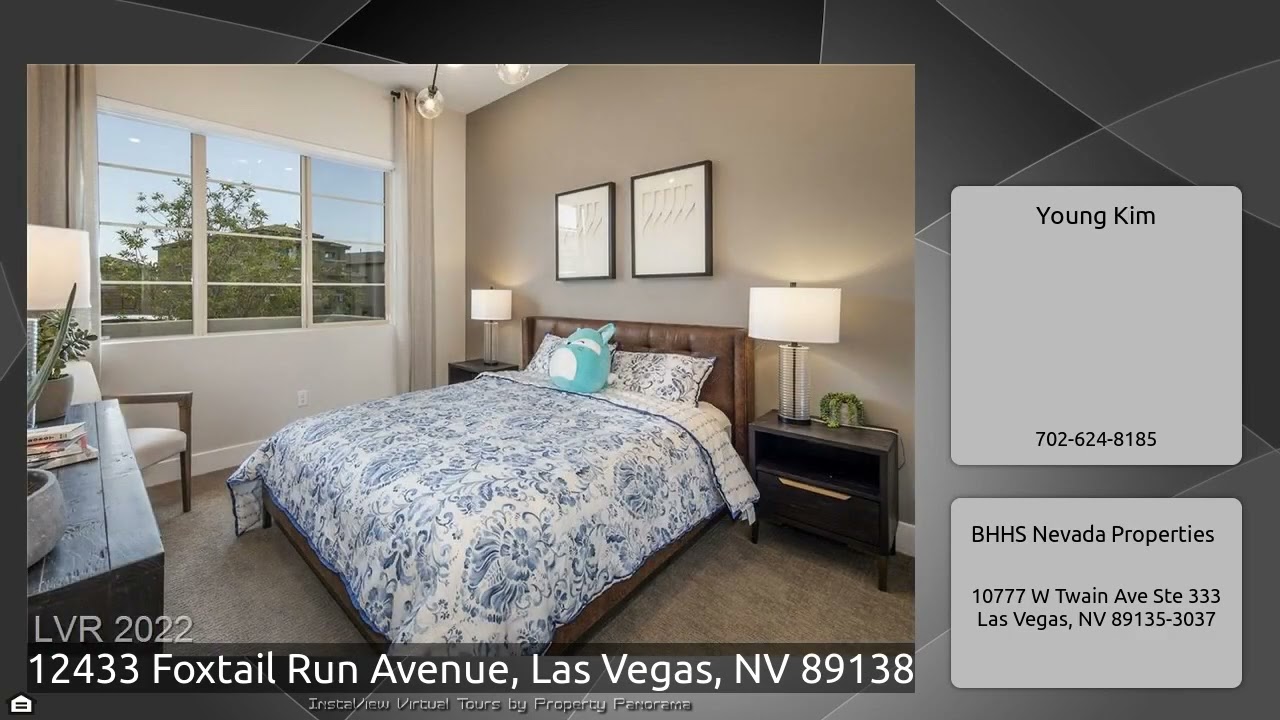 The Virtual Tour for the property at 12433 Foxtail Run Avenue, Las Vegas, NV 89138 listed for $1,250,000: Other homes for sale by Young Kim of BHHS Nevada Properties: Previous Pulte Model home in Foxtail community, the largest single story plan for sale. Gourmet kitchen appliances with chef's professional range and built-in refrigerator, oversize executive kitchen island, spacious living space with fireplace. Large den with full glass French doors, laundry room with sink & cabinet and much more! Open corner sliding glass doors lead to covered loggia. 3 Car tandem garage with tankless water …