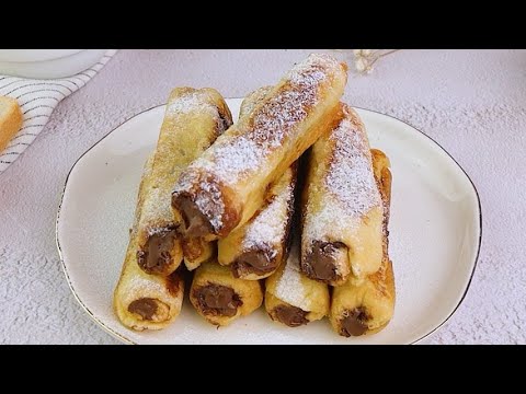 1. Roll out a slice of brioche bread and spread hazelnut cream on it.