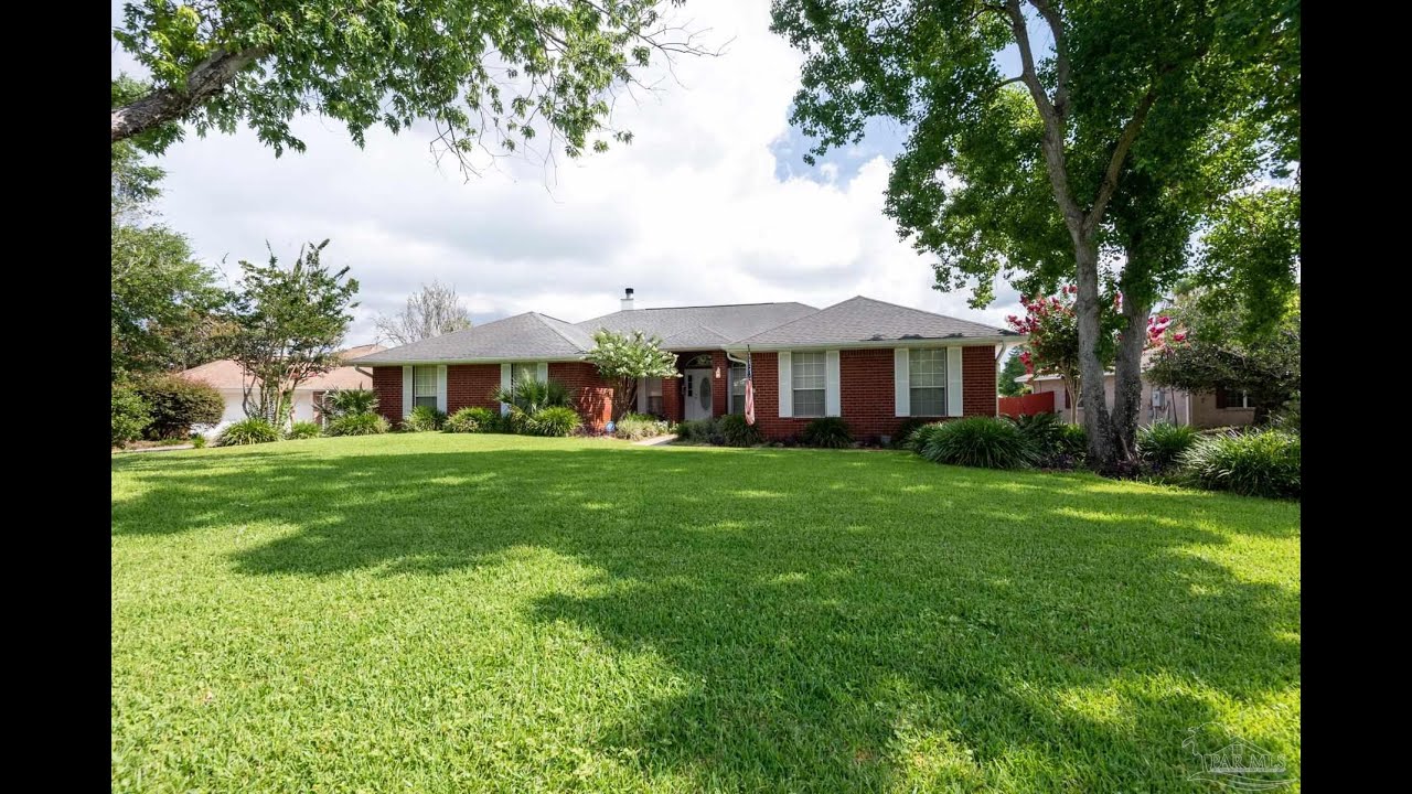 With an acceptable offer, the sellers will replace the roof. The home has a transferable warranty through Old Republic which also covers the pool and septic system. Experience your own piece of paradise in this must-see contemporary brick, lakefront pool home in the desirable subdivision of Spanish Trace Estates. This home has beautiful touches and highlights. As you walk into the open foyer, you’ll notice hardwood and tile floors in the main living areas and French doors entering into the home office. The open large great room has high cathedral ceilings, a fireplace and French doors leading you to the screened in gunite pool with views of the stocked fishing lake. The patio has an expansive paver deck and covered seating area for all your guests. The huge eat in gourmet kitchen is ideal for a large family with great counterspace and plenty of cabinet space, an island and separate buffet. As you enter the primary bedroom you’re welcomed with a spacious feel and invitation for relaxation. Complimenting the master is the en suite that includes a double sink vanity, soothing soaking tub and separate shower that connects to your spacious walk-in closet. The home also features a huge laundry room with plenty of storage space, a 50amp electric car outlet in the garage, and irrigation pump for the beautifully landscaped yard. With close proximity to shopping, restaurants, schools and just minutes away from Navarre Beach, this is a true entertainer’s home.