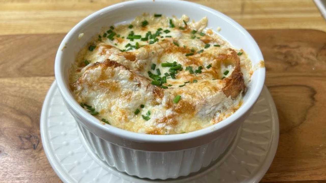 Make this classic gourmet French onion soup in your own kitchen. It is delicious, easy to make and one your whole family will enjoy.