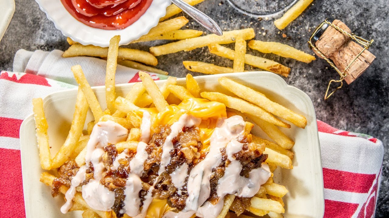 Do you like your fries “Animal Style” at In-N-Out? Now you can make Animal Style fries at home! In 1948 Harry Snyder introduced California’s first drive-thru hamburger stand, In-N-Out, and it has been a staple in California culture ever since! If you are longing for the ultimate fast food fix, we suggest recreating In-N-Out’s famous Animal Style Fries at home for yourself. The combination of crispy fries smothered under melted cheese, caramelized onions, and secret sauce is pure indulgence at its finest and a perfect pairing for California Sparkling wine or a crisp glass of Sauvignon Blanc.