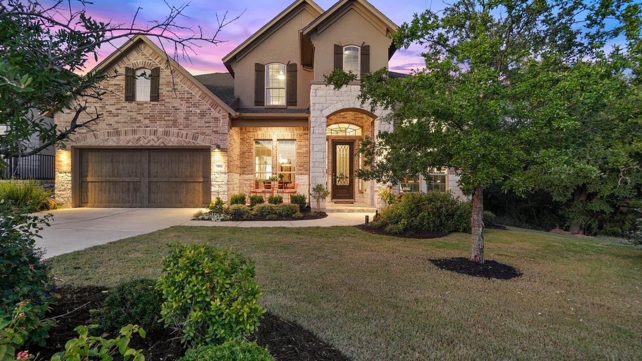 See the Property Website! :: Sensationally Captivating Newer Construction Home with Outdoor Poolside Oasis! Beautifully nestled in the amenity-rich and coveted development of Reunion Ranch, this 4BR/3.5BA, 3,325 sqft executive residence embodies luxurious vibes with stunning exterior brick accents, a grand covered entrance, impeccable landscaping, and a premium 0.26-acre lot backing against the greenbelt. Majestically drenched in shimmering natural light, the interior welcomes with gorgeous flooring, a modern color scheme, high ceilings, an openly flowing floorplan, an elegant main-level office with French doors, and an expansive great room with two-story ceilings and a well-appointed gas fireplace with stonework. Catering to the most discerning chefs and foodies, the open concept gourmet kitchen dazzles with stainless-steel appliances, granite counters, custom cabinetry, a gas range, a French door refrigerator with two freezer drawers, a glass subway tile backsplash, a pantry, a breakfast bar, recessed lighting, a breakfast nook, a center island, and an adjoining formal dining room with tray ceilings. Blissfully designed to accommodate substantial furnishings, the oversized main-level primary bedroom impresses with tray ceilings, bay windows, an enormous closet, and a spa-inspired en suite boasting a soaking tub, dual granite vanities, and a separate shower. Three additional bedrooms are generously sized with dedicated closets, while the game room and media room offer indoor entertainment options for all ages. Unparalleled enjoyment is discovered in the fully enclosed backyard, which delights with a heated swimming pool/spa, a covered patio, and serene nature views. Other features: oversized 2-car garage w/epoxy floors, ample attic storage, laundry room, community pools, parks, playgrounds, an outdoor pavilion, and multi-use sport fields, close to shopping, restaurants, excellent schools (Dripping Springs ISD), and entertainment, and much more!
