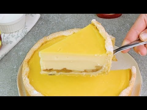 8. After time has elapsed remove the dough from the fridge and pour the apple mixture. Pour the cream and level it up with a spatula.