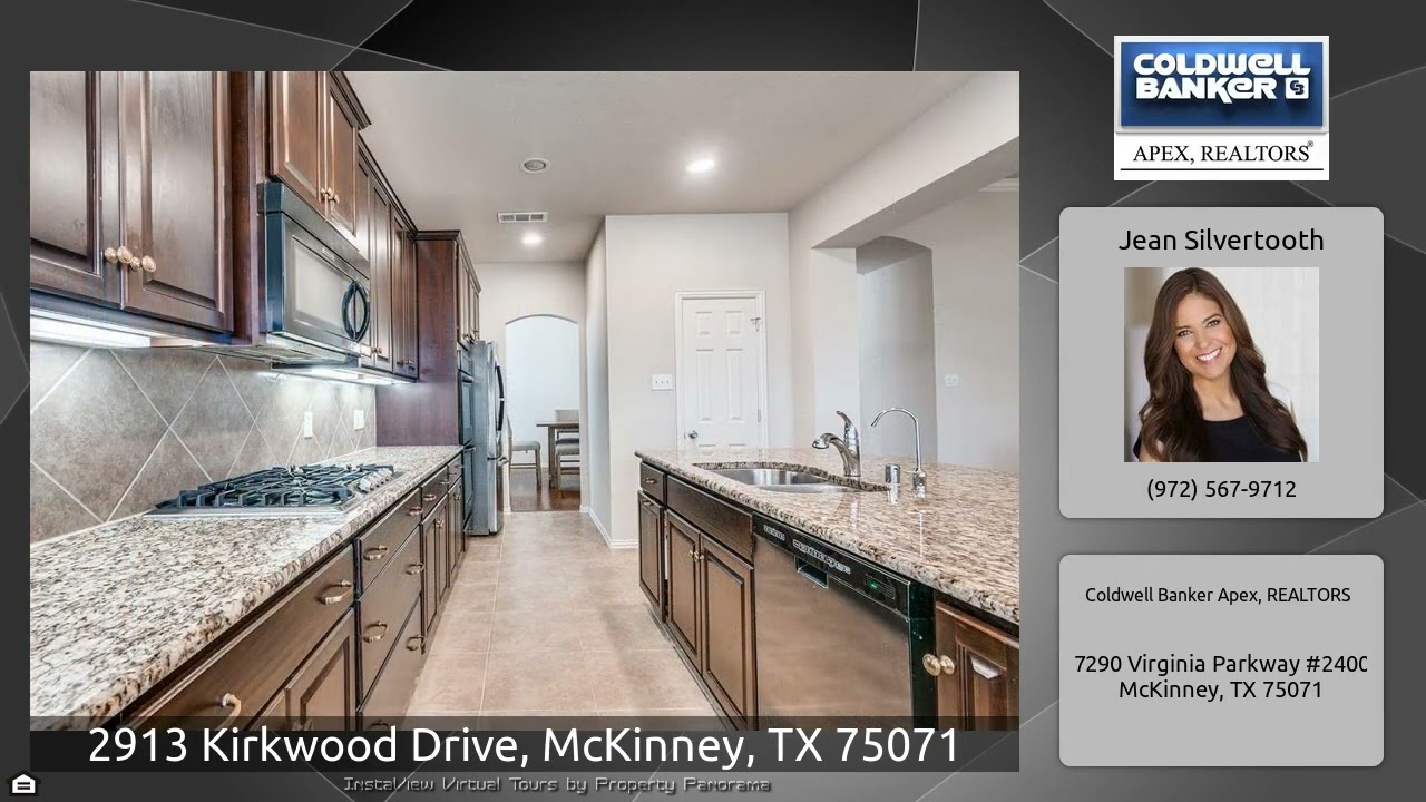 The Virtual Tour for the property at 2913 Kirkwood Drive, McKinney, TX 75071 listed for $530,000: Other homes for sale by Jean Silvertooth of Coldwell Banker Apex, REALTORS: Move in Ready Single Story home in Highly Desirable Summit View Lake. Prosper ISD! This beautiful 4 bedroom, 3 bath home offers an open layout with study, formal dining, and family room with stone fireplace. Study with french doors is private. Gourmet kitchen with double ovens, granite countertops, and walk in pantry. Relax in the Master retreat with dual sinks, walk in shower, and garden tub. Large backyard with …