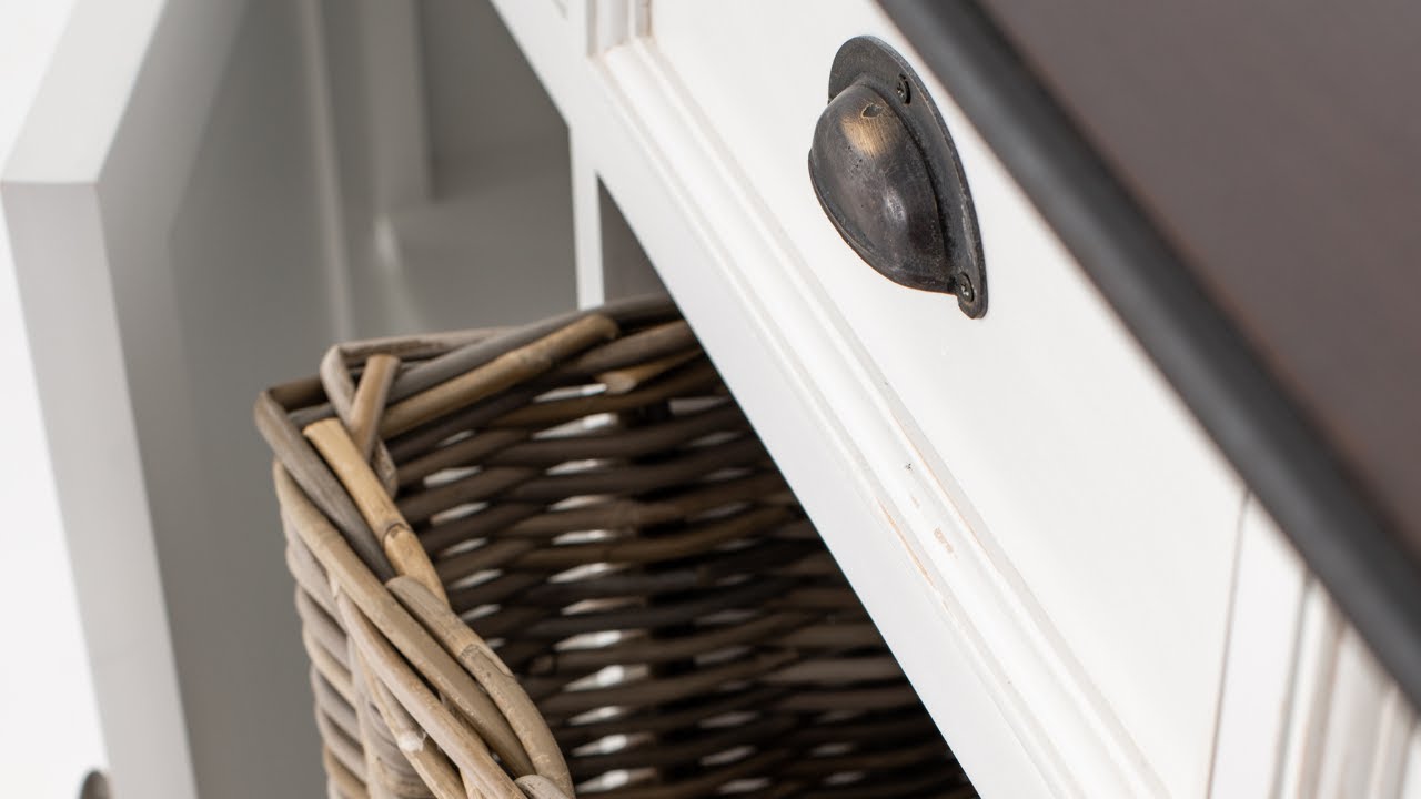 This variation on our classic buffet offers clever storage versitality with its combination of generous drawers, hand-woven baskets and fixed shelving behind shaker style doors. It’s the ideal piece for the living or dining room, housing linens, housewares, or wine glasses. We’ve exposed its wooden top surface and treated it with a deep and dark wood stain that bounces the light. We’ve also distressed the paintwork slightly so it channels a wonderful pre-loved vibe.