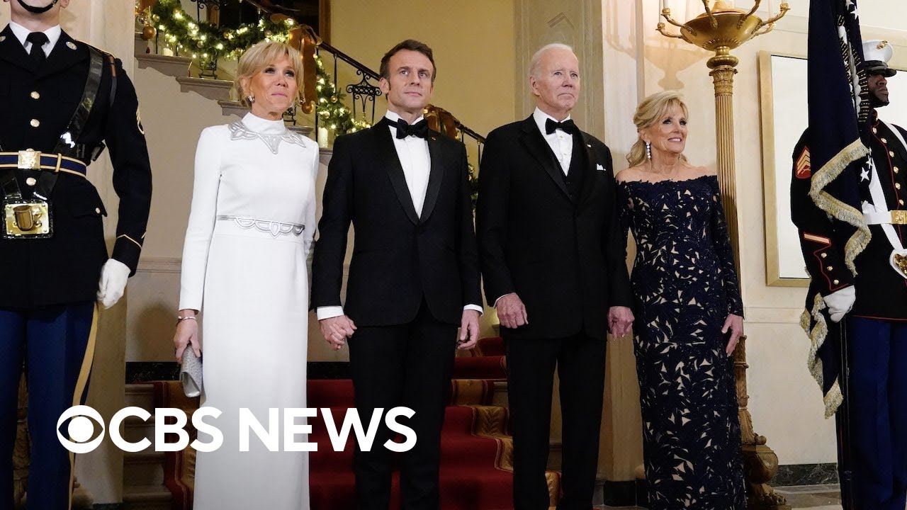 President Biden hosted his first state dinner for French President Emmanuel Macron, with congressional leaders and celebrities in attendance. Weijia Jiang reports.