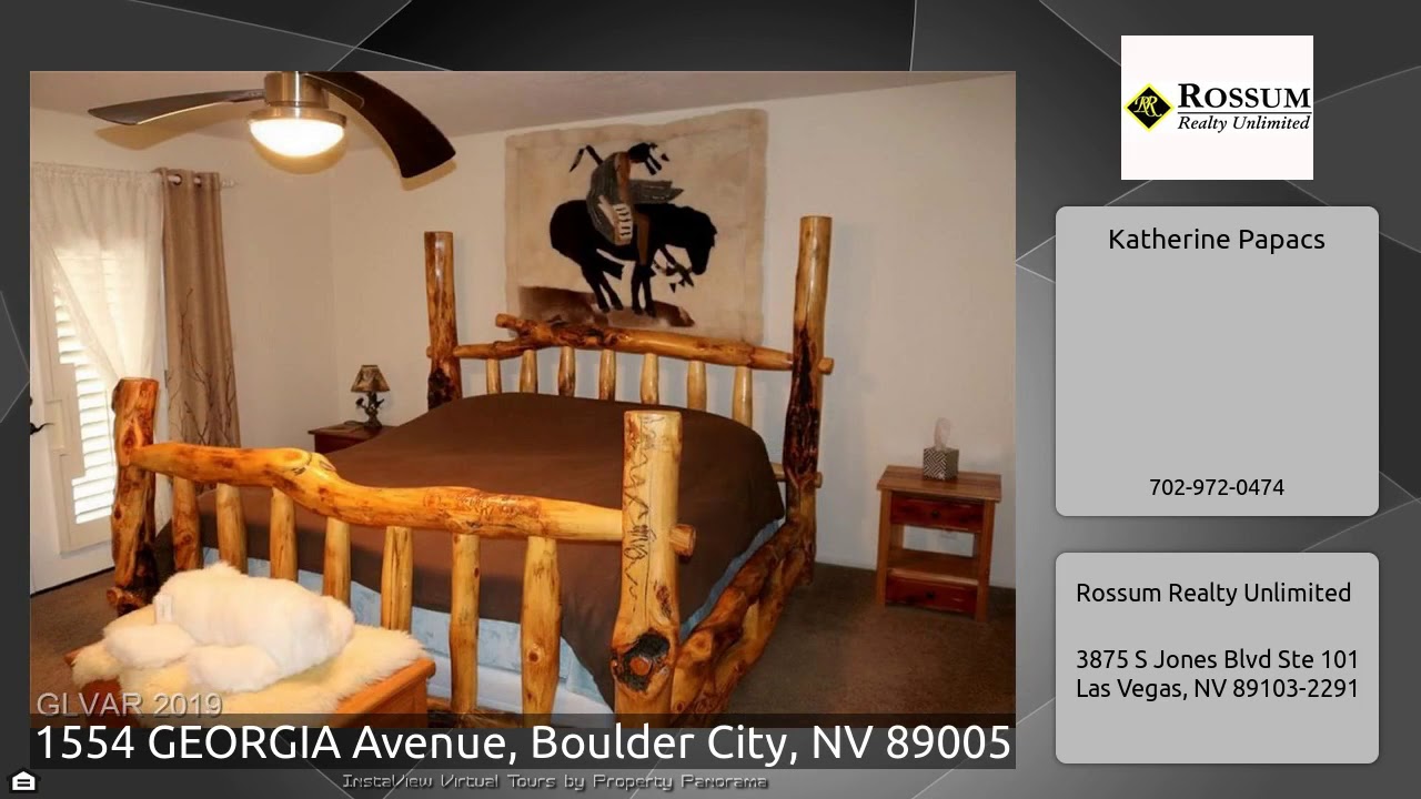 The Virtual Tour for the property at 1554 GEORGIA Avenue, Boulder City, NV 89005 listed for $424,000: Other homes for sale by Katherine Papacs of Rossum Realty Unlimited: Absolutely Stunning custom home with spacious bedrooms, custom brick fireplace in the living room, walk-in shower, RV parking and no HOA. Recently updated bathrooms and a very open layout leads you to the serene backyard, offering a large covered patio, mature shade trees and plenty of space for entertaining. This custom home offers beautiful plantation shutters and french doors in both the dining room and master bedroom.