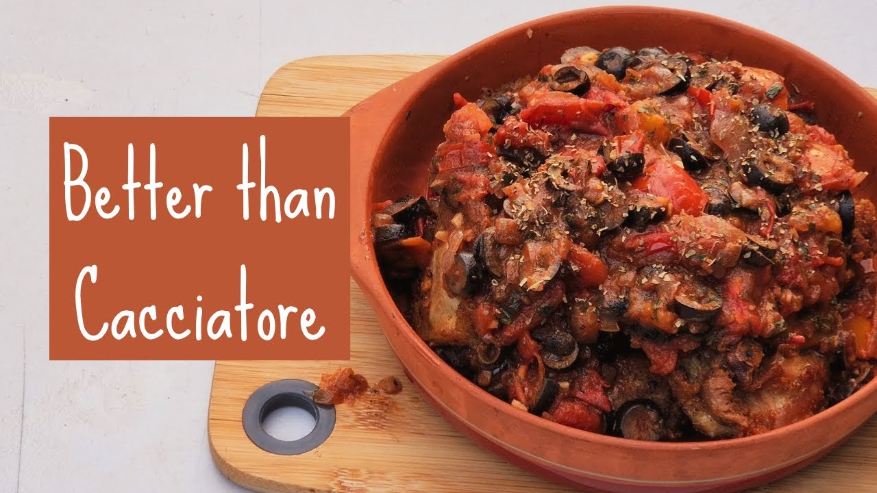 If you like cacciatore you will love this. In my opinion, it is better than cacciatore. It has similar flavours, less ingredients, and the method of sauteing the chicken first, produces a lovely texture to the chicken. After the chicken is sauteed then I make the sauce.