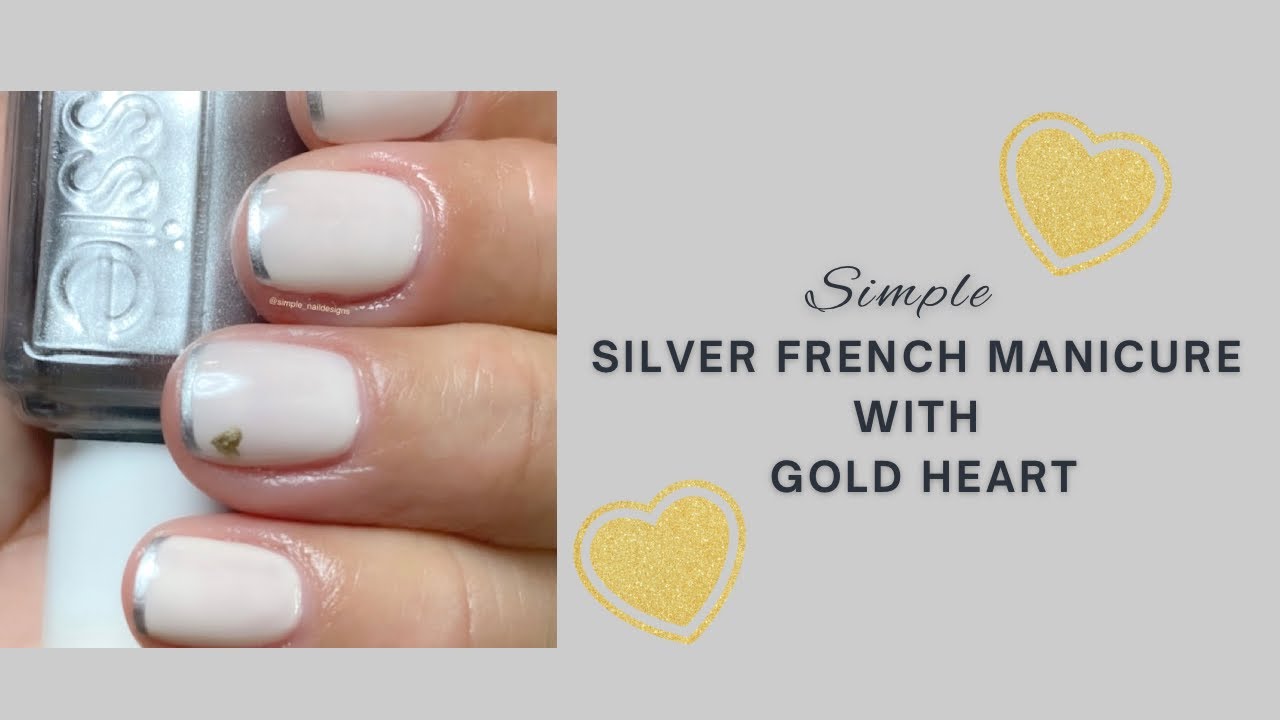 Sharing a simple silver French manicure with a gold heart.