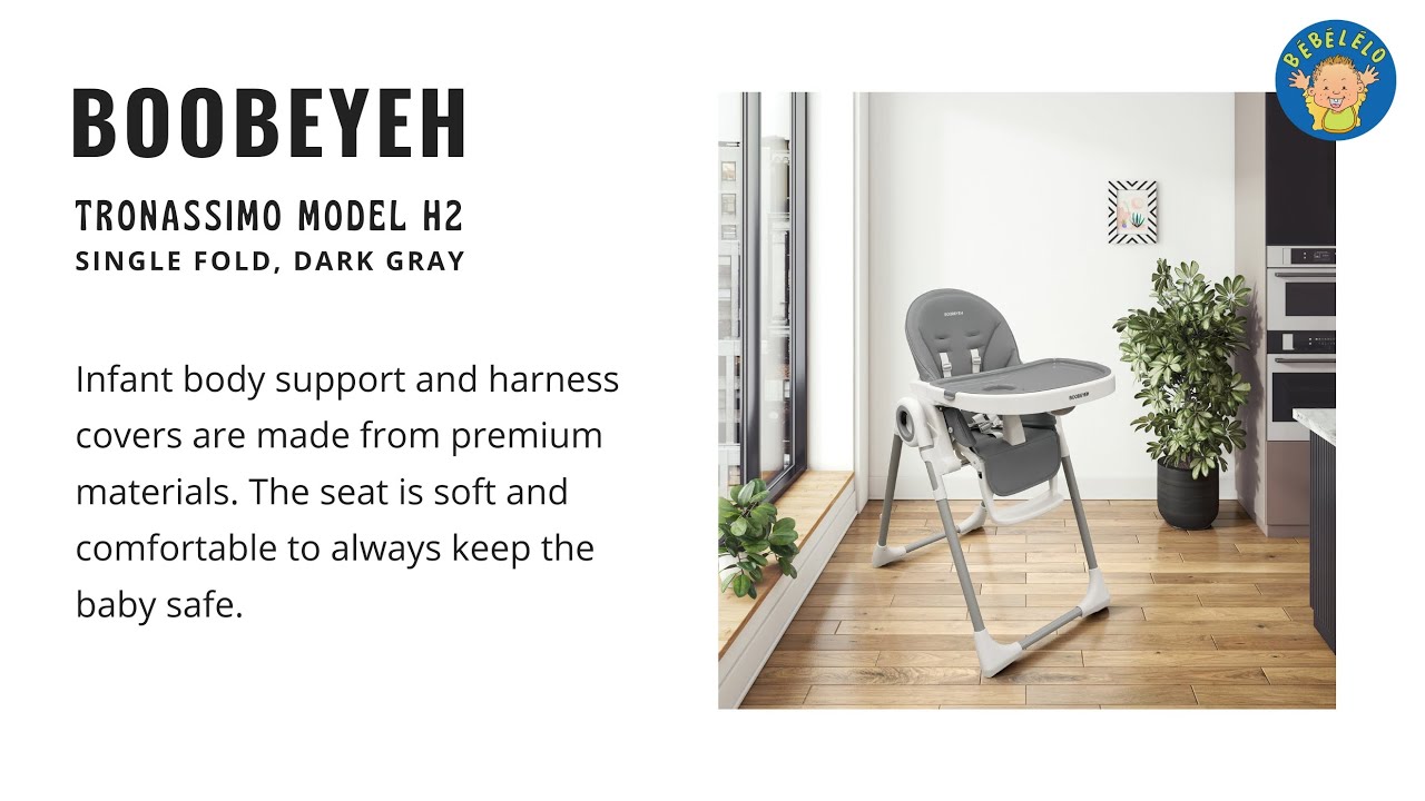 Boobeyeh, tronassimo model h2 foldable high baby dining chair for kids, dark grey.