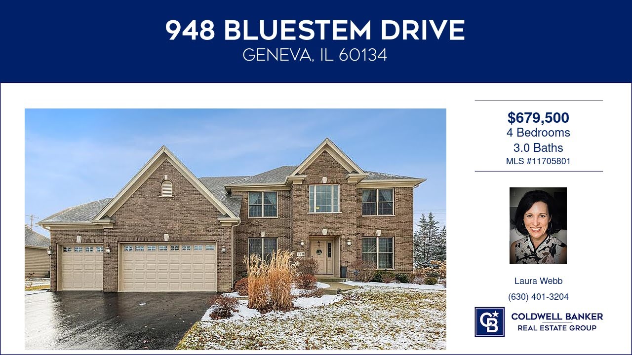 948 Bluestem Drive Geneva Illinois Homes for Sale | www.coldwellhomes.com | Laura Webb with Coldwell Banker Real Estate Group | See full property details at | Prepare to fall head over heels for this stunning Keim built home in Sunset Prairie. Truly a love at first sight winner, with all the feels of home! Sought after open floorplan with two story entry and family room, perfect for entertaining. Separate formal dining and living rooms. A first floor office with generous closet space that can function as a 5th bedroom or in-law arrangement with an adjacent full bath! Beautifully appointed gourmet kitchen with granite counters, oversized island, all stainless appliances, mosaic tile backsplash, and cabinet storage galore. Gorgeous stone, floor-to-ceiling fireplace hearth that is truly the heart of this home! 4 bedrooms upstairs with a birds eye view from the catwalk of the family room below. Vaulted master suite with an elegant french door entry to the primary bath, offering separate oversized walk-in shower and soaker tub, dual vanities, private comode, and massive walk-in closet. 3 car garage and 9 ft pour basement with bath rough-in for all of your finishing desires. New, expansive paver patio with built-in lighting and adorable outdoor woodburning fireplace. Immaculately maintained landscaping. Warm neutral colors throughout. On trend white plantation shutters. Meticulously maintained home. Not a single thing to do but unpack and enjoy all of the luxuries of nearby parks, trails, park district amenities, Peck Farm butterfly house, sensory gardens, observation silo, 19 acre wetlands, athletic fields and all of the beauty and convenience Geneva has to offer…Welcome Home!