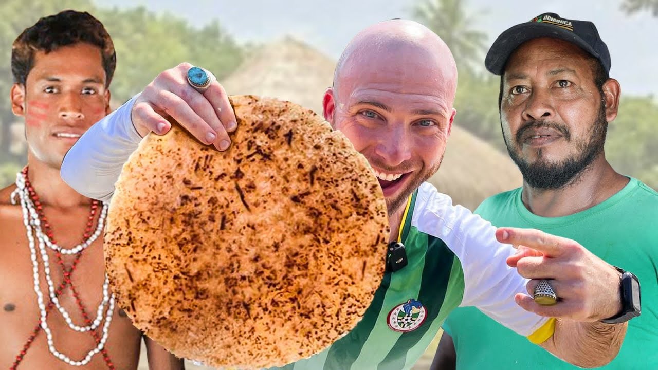 DANIEL CASSAVA: At this roadside shop, I met Daniel, the pioneer of making cassava bread in Dominica. He made some fresh coconut cassava bread for us, which was crispy and sweet, and a little gooey on the inside!