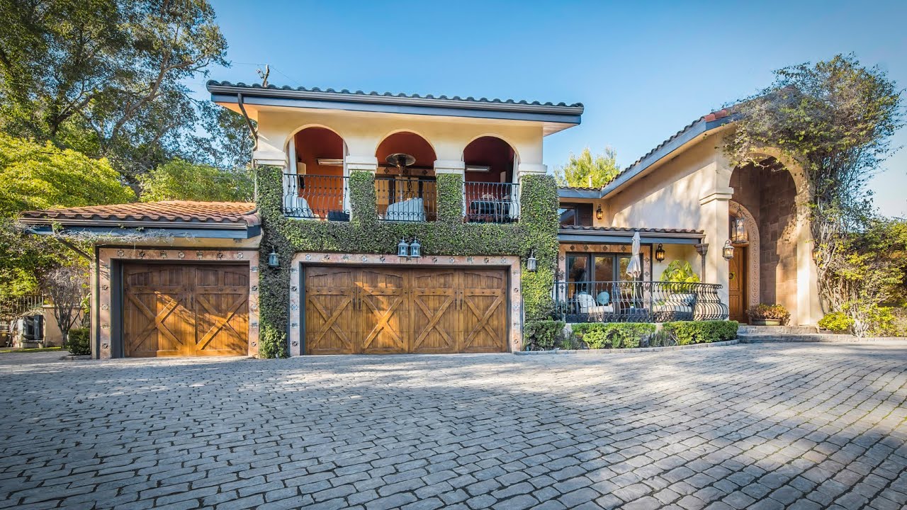 Nestled in Chevy Chase Canyon, resides this custom-built Mediterranean estate full of old-world charm. The exterior of the home is covered in ivy and surrounded by lush mature landscaping that gives a true feeling of privacy. Stately double doors invite you inside, where you’re greeted by a grand foyer with lofty ceilings. On the main level you will find a spacious dining room and living room, each boasting vaulted ceilings, as well as a gourmet kitchen that includes top-of-the-line appliances, a breakfast nook and large island with a breakfast counter. The primary suite features a large walk-in closet and opulent bath with a jetted tub and double vanity. Upstairs there are three bedrooms, one of which is an ensuite, and a family room that has an inviting covered balcony. French doors located in the living room, kitchen and primary suite open directly to the expansive patio where you can enjoy al fresco dining next to a cozy wood burning fireplace. The serene backyard sanctuary also features a resort-like pool/spa, cabana with summer kitchen/bar and lower deck nestled amongst mature trees. Additional amenities include a three car garage and large gated motor court. Conveniently located walking distance to Chevy Chase Golf Club.
