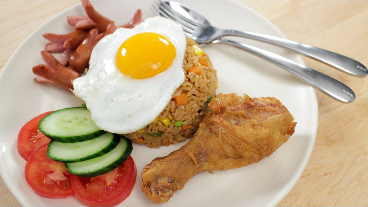Since the 4th of July celebration is coming up, I thought it would be the appropriate time for me to post this “Thai” recipe! This fried rice, though named “American”, is a uniquely Thai experience. It contains ingredients that we associate with American food: ketchup, hot dogs, sunnyside up egg, and fried chicken drumsticks (possibly through the asoiciation with KFC).