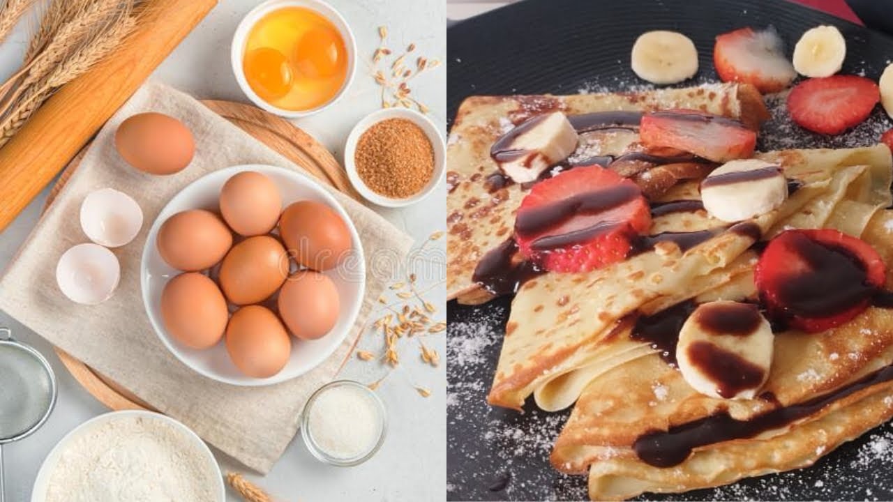 A thin layer of pancakes is called crepes made of flour egg sugar milk
