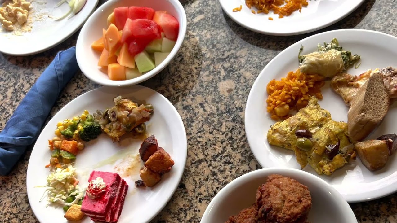 Breakfast in the dining room consists of traditional morning items, including eggs your way (omelets and Benedict included), pancakes, waffles and French toast, various sides (corned beef, sliced ham, hash browns, sausage, bacon), cereals and breakfast pastries. (The mini chocolate chip muffins were delicious.)