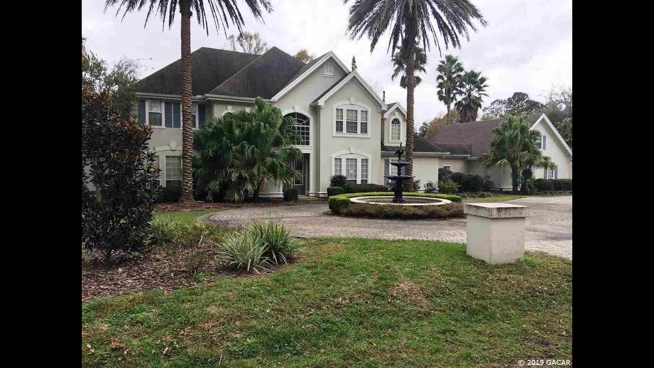 Beautiful 4 BR, 4 and 1/2 baths in desirable Thornehill gated community off Millhopper Rd. Home features soaring 20 ft.ceiling, wood, carpet and ceramic tile floors. French doors from master bedroom, formal living room and family room lead to pool and screened lanai. Large office/library with ceiling to floor shelves on one wall. Formal dining room, kitchen opens to breakfast nook and family room. Total 5 car capacity garages. All of this on 2.8 acres, pond fronting parcel.
