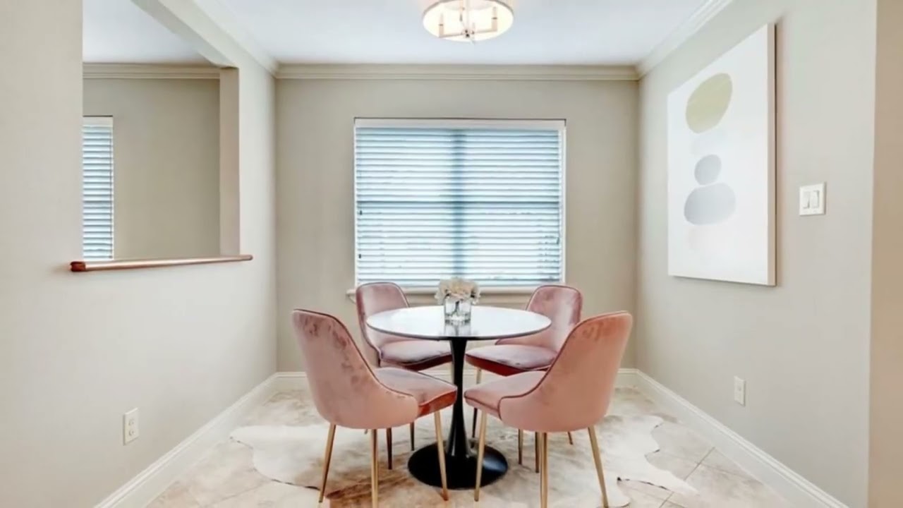 Remodeled with attention to detail in 2010 including hand scraped engineered hardwood floors (per original seller) in the formal living & dining rooms, gas log fireplace in the dining or living (rooms can be used as either/or according to your needs & tastes!), gourmet island kitchen offers granite countertops, tumbled marble backsplash, stainless steel appliance package & stone tile floors with a breakfast room. Large & inviting family room is open to the kitchen & boasts a gorgeous wood beamed ceiling, engineered wood floors (per original seller) with French doors to the private backyard! The hall bath offers natural stone finishes with a double sink vanity. The primary suite is beautiful with a walk-in closet & the primary bath offers dual sinks + separate vanity space, a walk-in tub & a stone tile shower. Access the huge backyard (9,605sf lot) directly from the primary suite French doors to a stone patio! Windows replaced in 2010, recent sprinkler system! *All info per seller.