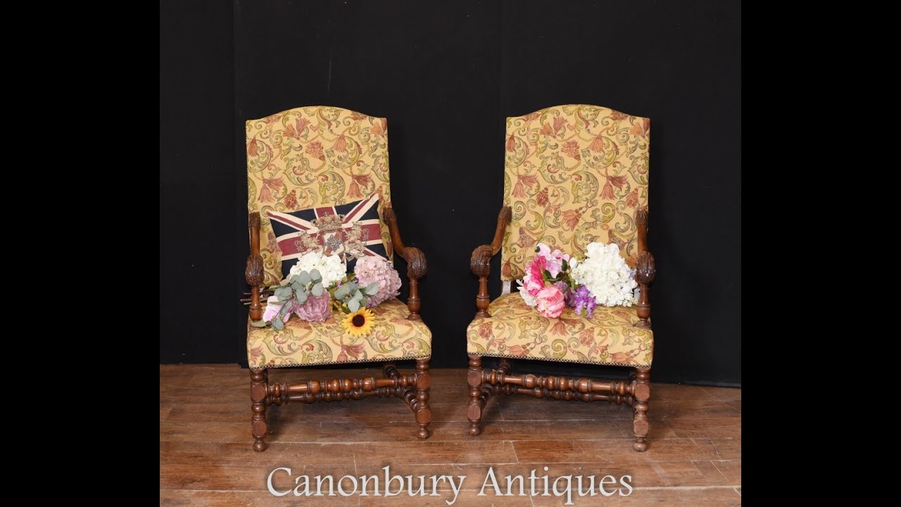 – Gorgeous pair of French arm chairs in walnut