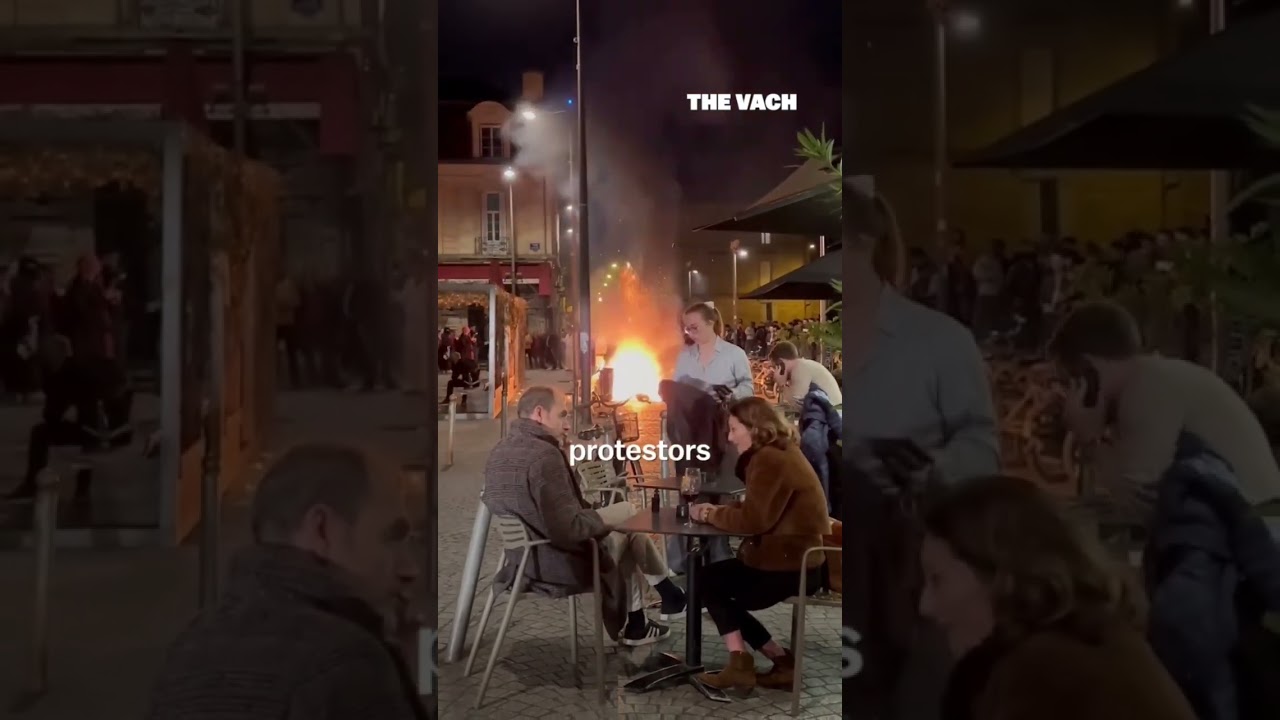 French diners drink wine in fire and protestors eat fancy #shorts