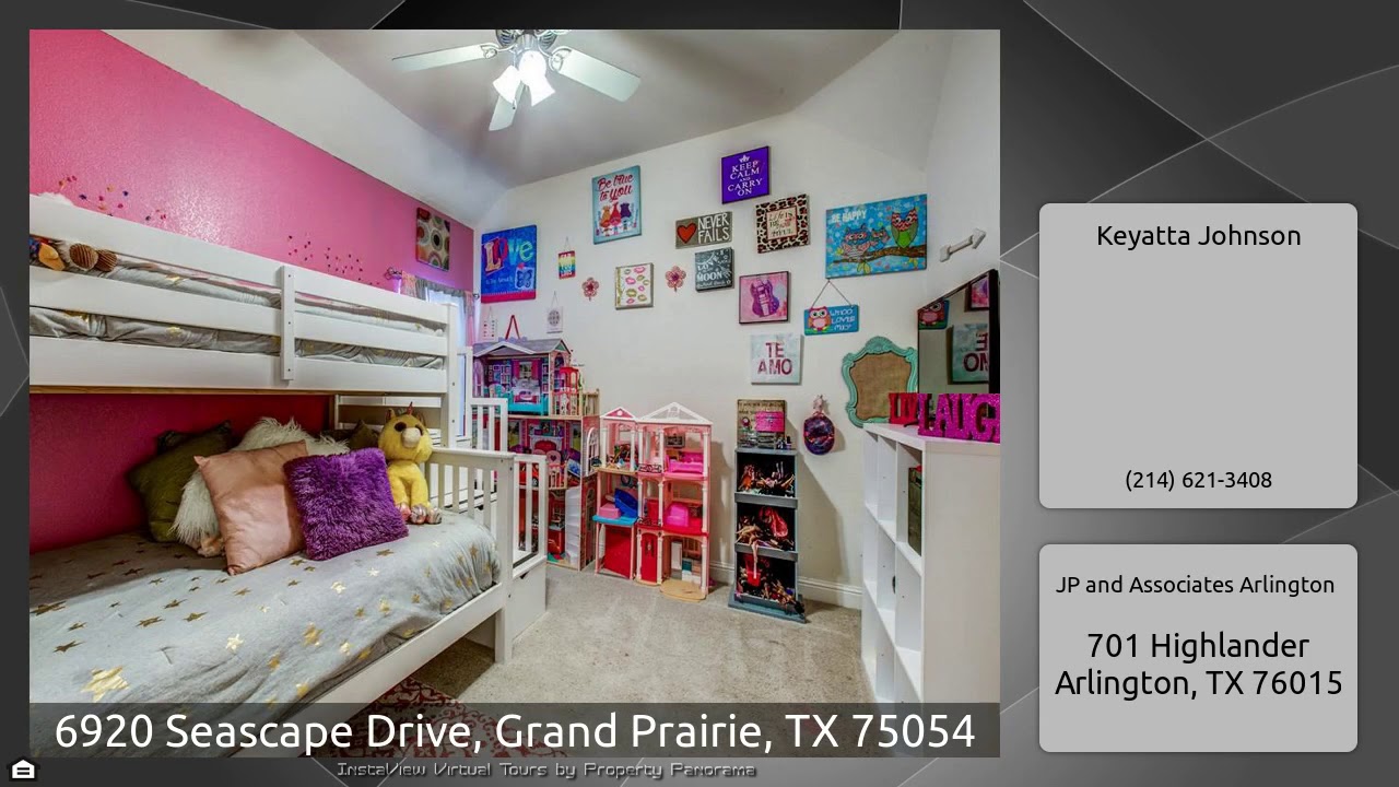The Virtual Tour for the property at 6920 Seascape Drive, Grand Prairie, TX 75054 listed for $349,900: Other homes for sale by Keyatta Johnson of JP and Associates Arlington: Gorgeous Grand Home in the Coast at Grand Peninsula. This one owner home has an awesome floor plan 3 bed & 2 full baths on 1st floor. Home features hardwood floors, study with french doors & custom built ins, formal dining, & spacious family room perfect for entertaining. Large kitchen is complete with granite counter tops, plenty of cabinets, & a gas range for cooking. Oversized 1st floor master suite with en-suite …