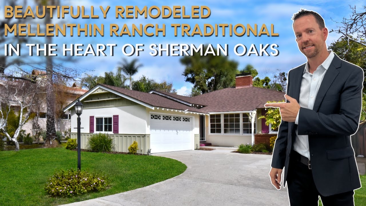 Just listed for lease in Sherman Oaks.This beautifully remodeled William Mellenthin ranch traditional is located in the heart of prime Sherman Oaks and offers 3 bedrooms, 2 bathrooms, and 1,760 square feet of living space. The formal living and dining rooms are spacious and elegant, with picture windows that fill the space with natural light. The spectacular great room is the real highlight of this home, featuring a sleek and modern kitchen with high-end appliances, a built-in eating area, and wine fridge. French doors lead out to the large backyard, perfect for al fresco dining, playtime, or relaxation under the stars. The three spacious bedrooms on the opposite side of the home offer ample room for family and guests, and the spa-like bathroom is truly impressive. Built in 1954, this home seamlessly blends classic elegance with modern convenience, making it the perfect place to call home.