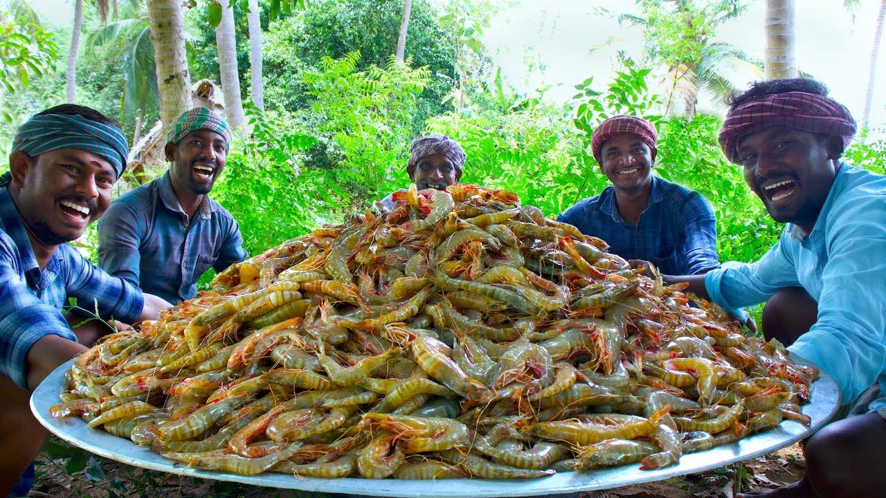 We just cook fried shrimp recipe by adding ingredients which are available in our village. Taste is crispy!