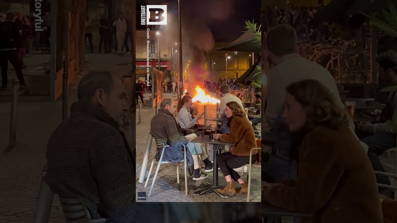 It’s a vibe, honestly! Two french cafe diners were caught enjoying their wine against the warm glow of a fire lit by pension reform protesters. #shorts BreitbartdinersEmmanuel MacronfireFranceFrenchfrench wineLibationMacronpensionsprotestprotestersprotestsRagingSipVideoVivaVlogWineYouTube