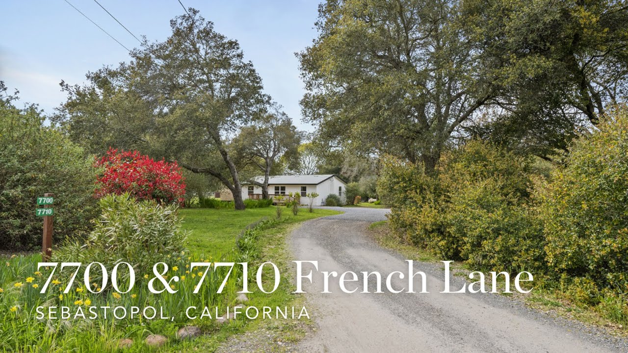 Splendid 2 acres, sunny and dotted with sleepy oaks, quiet and private down a sweet country lane. 2 homes, separate from each other, with separate addresses and separately metered. Main home is 2 bedrooms plus office, 2 full baths, 1032+/- sq.ft. ADU is 1 bedroom with office, 2 full baths, 840+/- sq.ft. Both welcome with such comfort, an openness and warmth. They are marvelously manufactured with full perimeter foundations, Hardie board siding. Both homes are newly painted inside and out, new light fixtures are installed, 2018 roofs and both have indoor laundry. Primary home has new wood and carpet flooring. The 2+ acres is flat and usable. Zoned DA for cottage industries, animals, gardening, expanded ag opportunities. And don’t miss the secret view corner. An outdoor kitchen/living would be an ideal finishing touch. Affordable and magical Sebastopol and the best part? It could be yours!