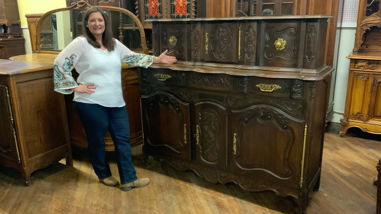#AntiqueFrenchSideboard #FrenchCountryStyle #SolidOakFurniture #BreadCabinet #CarvedFurniture #HandCarvedDetails #OakSideboard