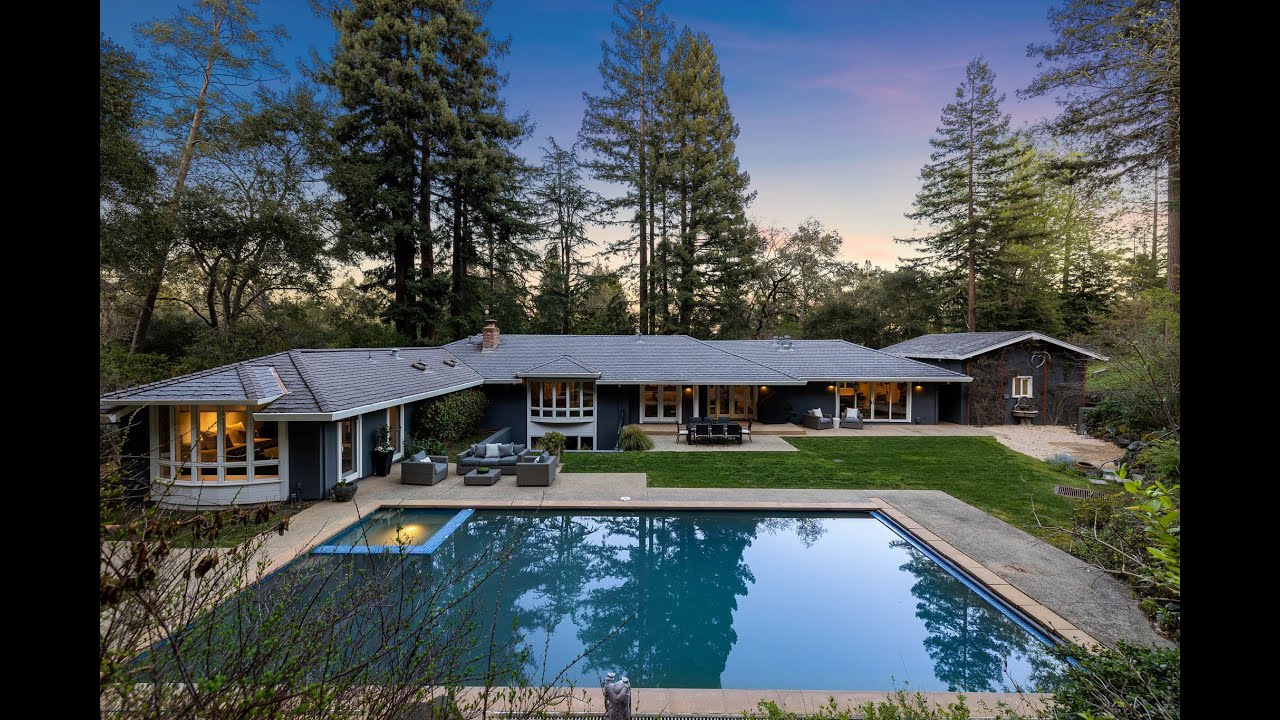 The grounds are equally compelling and extremely private with the pool and spa, a rock waterfall cascading down the hillside, custom playground on the level front yard, and a wonderful picnic area above the barn. Offering the best of Woodside living, this home is just over one mile to the town center and acclaimed Woodside Elementary School as well as to hiking trails at 973-acre Huddart Park.