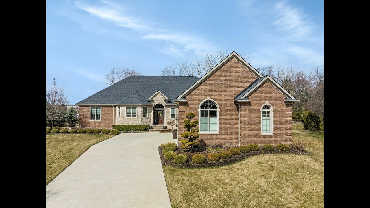 Custom built ranch on a 3/4 acre lot.Thoughtfully designed with quality high end finishes! Enormous chef’s dream Dillman & Upton island kitchen with unique honed leather finished granite tops, opens to formal dining room space and great room with full wall of windows with remote blinds. French doors to covered loggia with ceiling fan & recessed lights. Gas fireplace on custom stonework wall in great room. En Suite with coffee bar, wine fridge, gas fireplace, full bath with heated floor, handicap accessible glass door shower, two walk-in closets with organizers, doorwall to patio. Two spacious bedrooms on opposite side of home, share a Jack & Jill bath. Enjoy & entertain in the backyard oasis with gunite salt water pool, hot tub & gas firepit Walk out lower level with work out room, convenient full bath for guests to rinse off after a refreshing swim! Additional amenities include: Jenn Air appliances. Remote blinds on all, but 2 windows. Whole House generator.