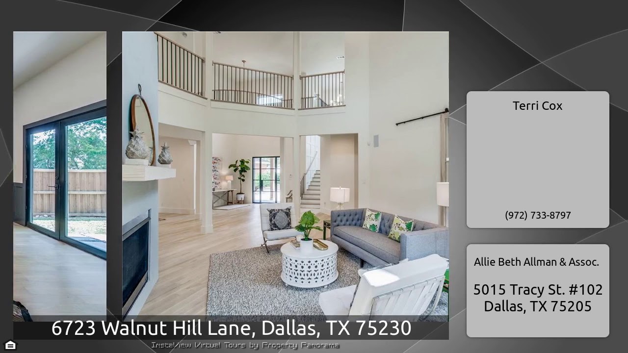The Virtual Tour for the property at 6723 Walnut Hill Lane, Dallas, TX 75230 listed for $1,100,000: Other homes for sale by Terri Cox of Allie Beth Allman & Assoc.: Fabulous Home at a Fabulous Price. Transitional Architecture at Its Finest, Located in The Heart of Preston Hollow. Beaming w Natural Light, Fantastic Designer Finishes, Visual Comfort Lighting & More. Full Service Gourmet Kitchen w Center Island, Stainless Appliance Package, Abundant Living & Dining Spaces, Outdoor Access & Views. Downstairs also includes a Handsome Study w French Doors to the Backyard, Palatial Great Room, …