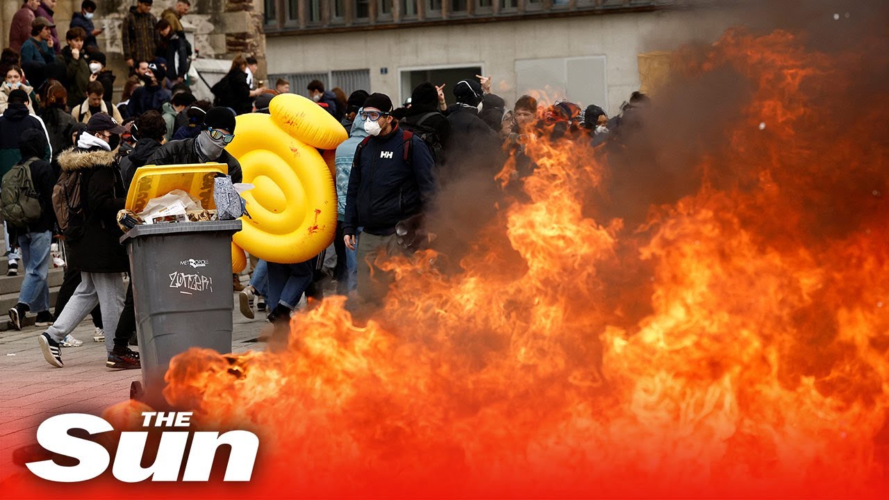 Clashes erupted in Rennes in the Brittany region of France on Thursday as protesters marched against President Emmanuel Macron and his deeply unpopular pension bill.