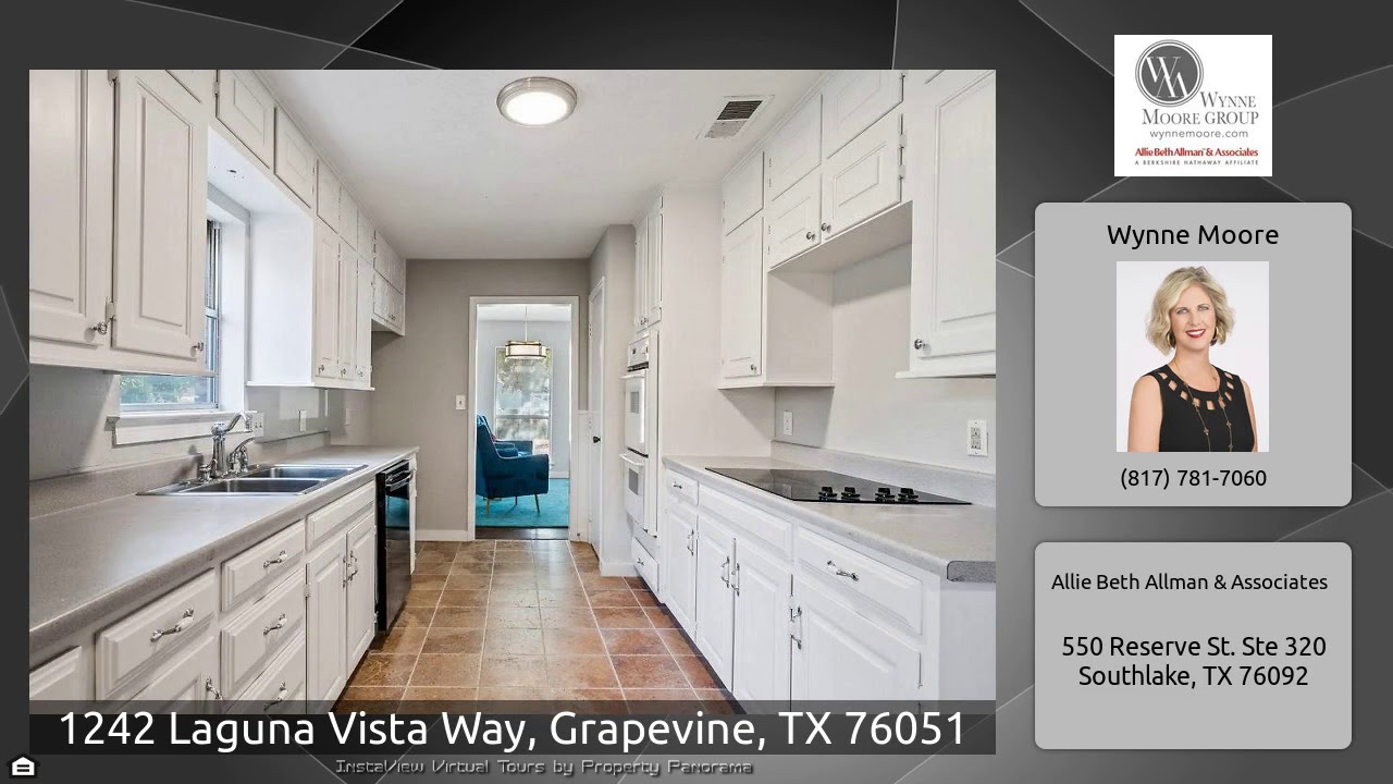 The Virtual Tour for the property at 1242 Laguna Vista Way, Grapevine, TX 76051 listed for $350,000: Other homes for sale by Wynne Moore of Allie Beth Allman & Associates: Fantastic location near Oak Grove Park and Grapevine Lake. Spacious one-story home with mature trees, shaded yard, curved driveway, and many updates. The entryway leads to a freshly painted formal living and dining room. A bright and open kitchen is accented with white cabinets and a cozy breakfast nook. The main living area has vaulted ceilings, an aesthetic fireplace, and double French doors that open to a bright sun- …