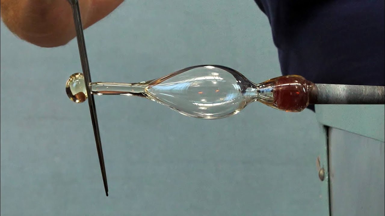 This video shows a cylindrical gather of glass on the end of a blowpipe being partly inflated. A constriction is then made near the tip of the glass and the stem is begun by pulling outward on the constriction with a tool. The glass is further inflated and elongated to form both the vessel and the stem. After a foot is added, the vessel is transferred to a pontil and the rim is finished. Learn more about this object in The Techniques of Renaissance Venetian-Style Glassworking by William Gudenrath 🍷