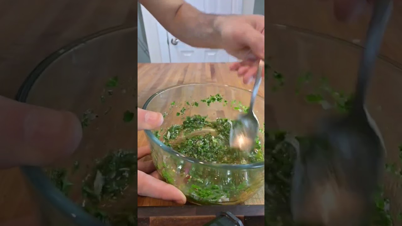 For the Chimichurri sauce, chopped everything small and mix it together. Let it sit in the fridge for at least 20 minutes.