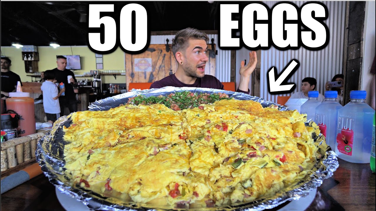 A 50 egg omelet, that is the biggest omelet challenge ever! Today we take on a giant breakfast challenge featuring a giant, three topping 50 egg omelet. Yes, that is over four dozen eggs! And eggs are now expensive lol . We are at untoasted in Florida, the Fort Lauderdale area, trying to become the first to conquer this undefeated how much challenge! Weighing in at approximately 10 pounds this omelet was absolutely massive. I had to pick some toppings so i went with breakfast classics like bacon, ham, onions and peppers! We had 30 minutes to get the $100 omelet meal for free, otherwise you’d be paying for the meal and failing that food challenge! Will this be a Joel Hansen failure? Or Joel Hansen failed this challenge? Or will you be able to win this man versus food style challenge like Adam Richman, tune, in to see!